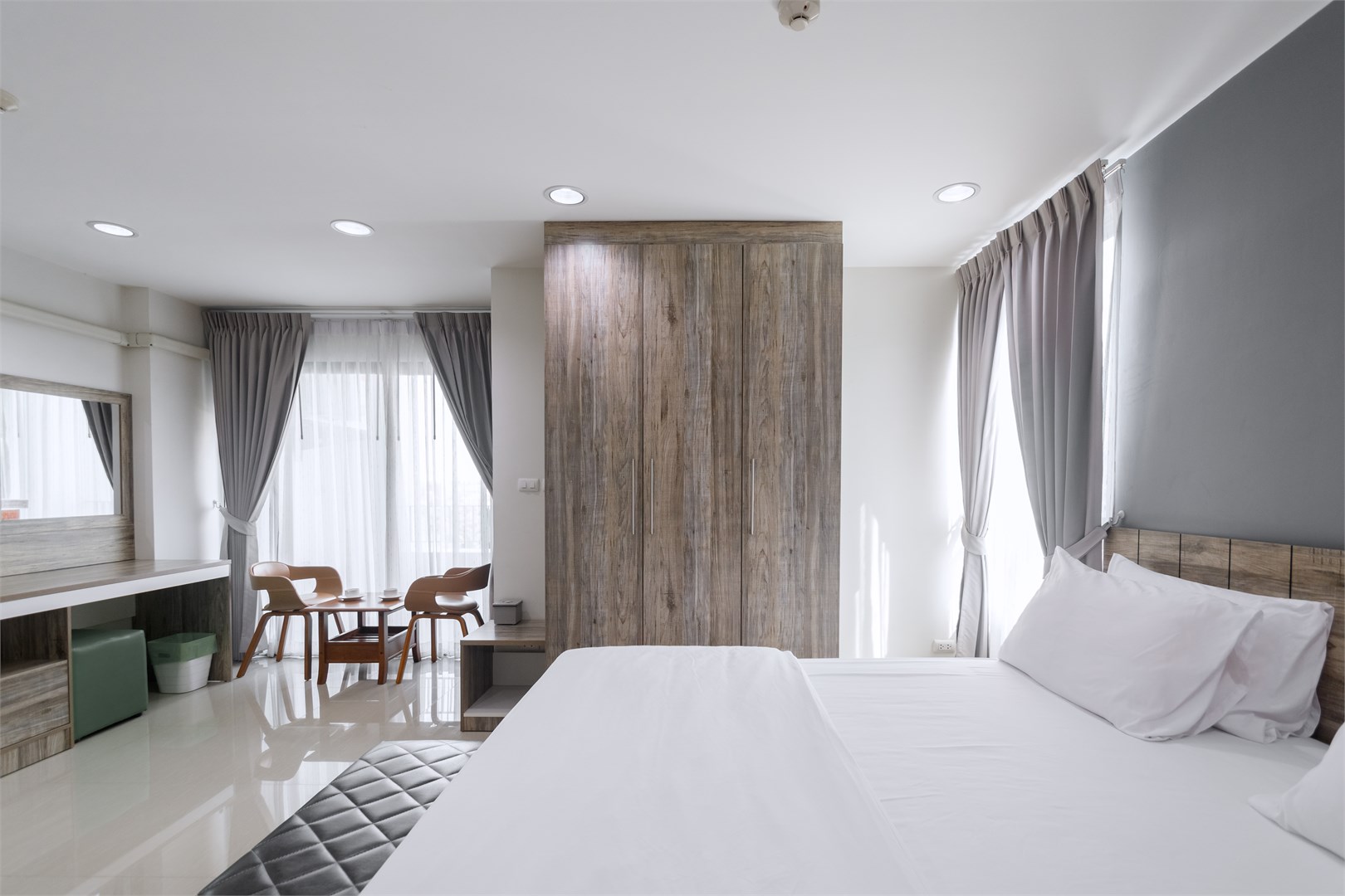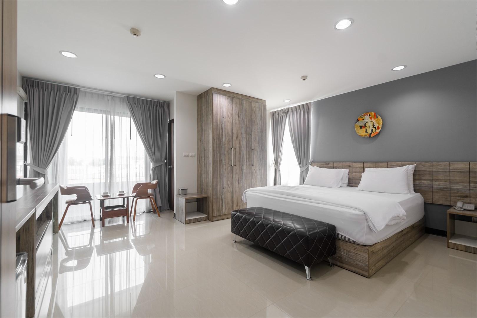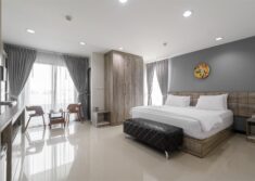 ห้องพักระดับพรีเมียม เตียงนอนคิงไซส์นุ่มสบาย ตกแต่งด้วยเฟอร์นิเจอร์คัดสรรพิเศษ จัดวางในห้องขนาดใหญ่อย่างเป็นสัดส่วน พร้อมระเบียงส่วนตัว รวมถึงสิ่งอำนวยความสะดวกอย่างครบครัน